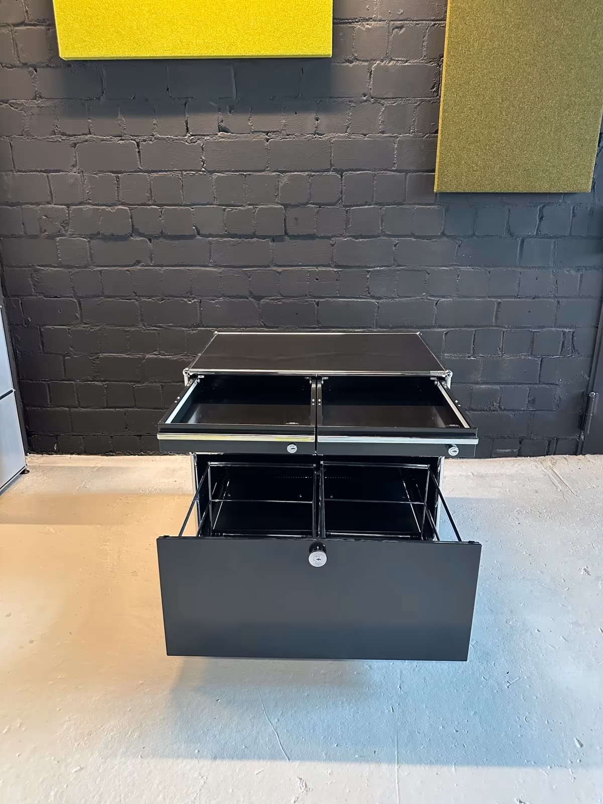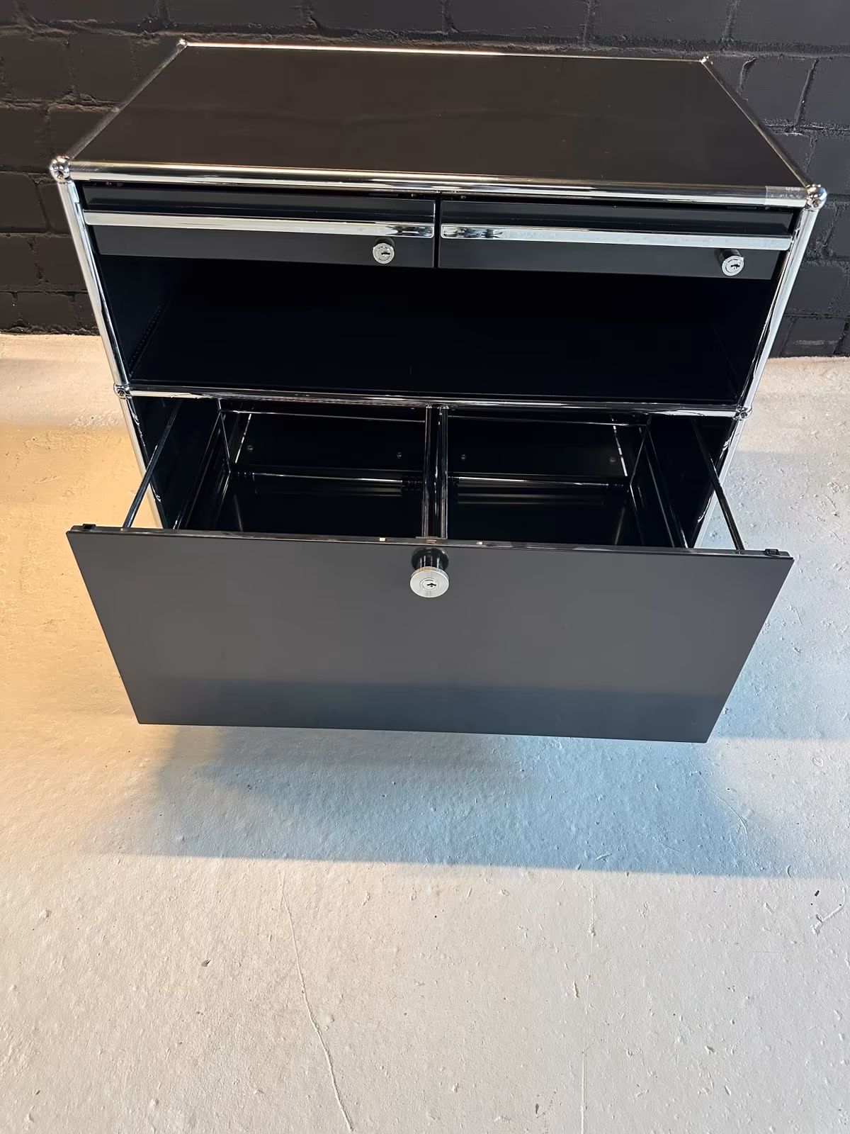 Be the first to review “USM Haller Doppelrollcontainer schwarz 2 Schubladen 1 Auszug”